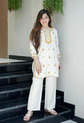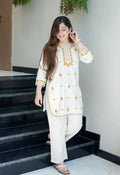 Flared silhouette with a comfort fit Delicate hand embroidery, gathering